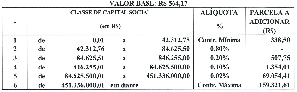 As firmas ou empresas e as entidades ou instituições cujo capital social seja igual ou inferior a R$42.312,75, poderão recolher a Contribuição Sindical mínima de R$ 338,50, de acordo com o disposto nos artigos. 578, 580§ 3° e 587 da CLT, com a redação dada pela Lei no 13.467, de 13 de julho de 2017;
